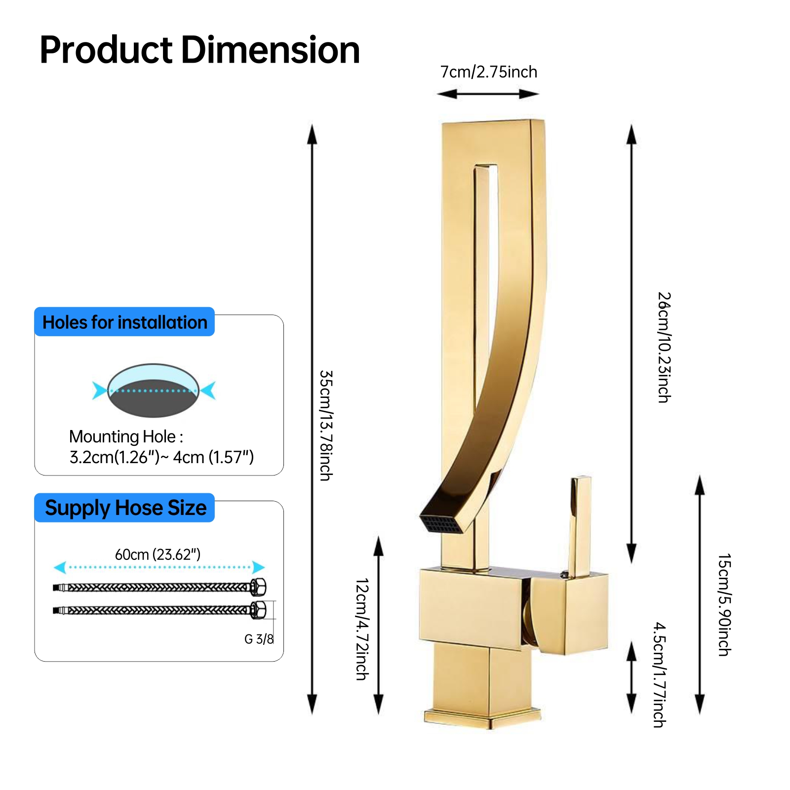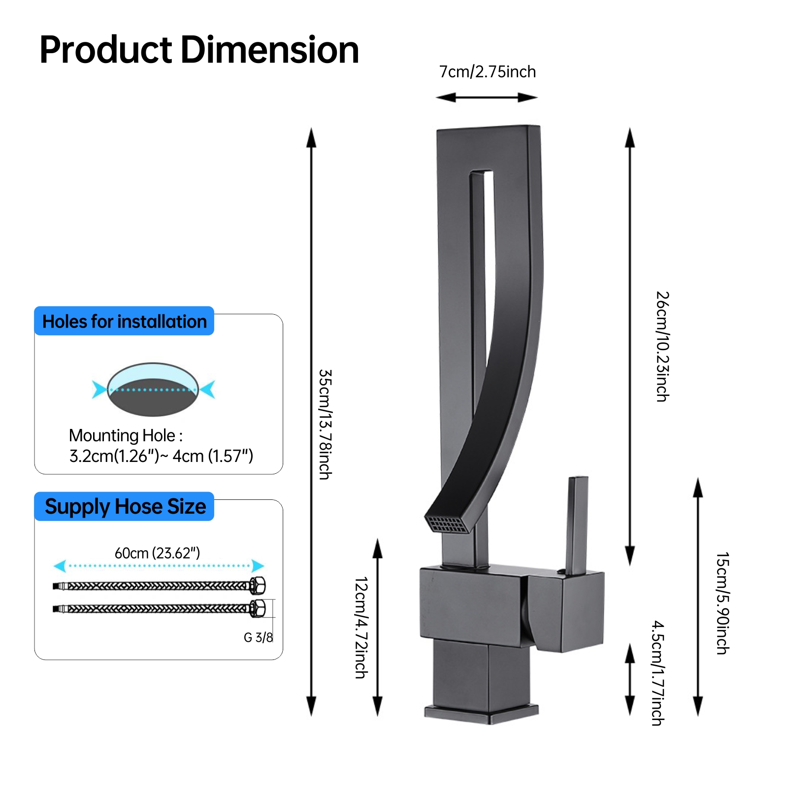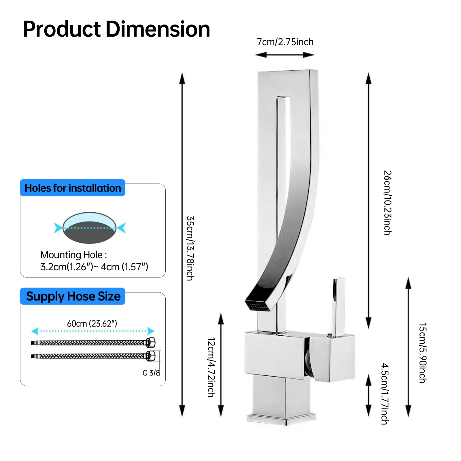- Single-Hole Installation: Suitable for standard single-hole installation, making it easy to install and ideal for home or hotel use.