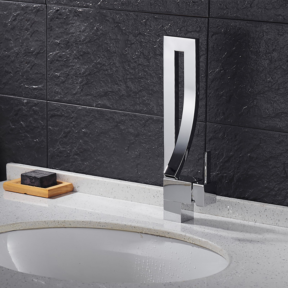 Geometric Design Faucet – Innovative Waterfall Spout Modern Single Handle Tap